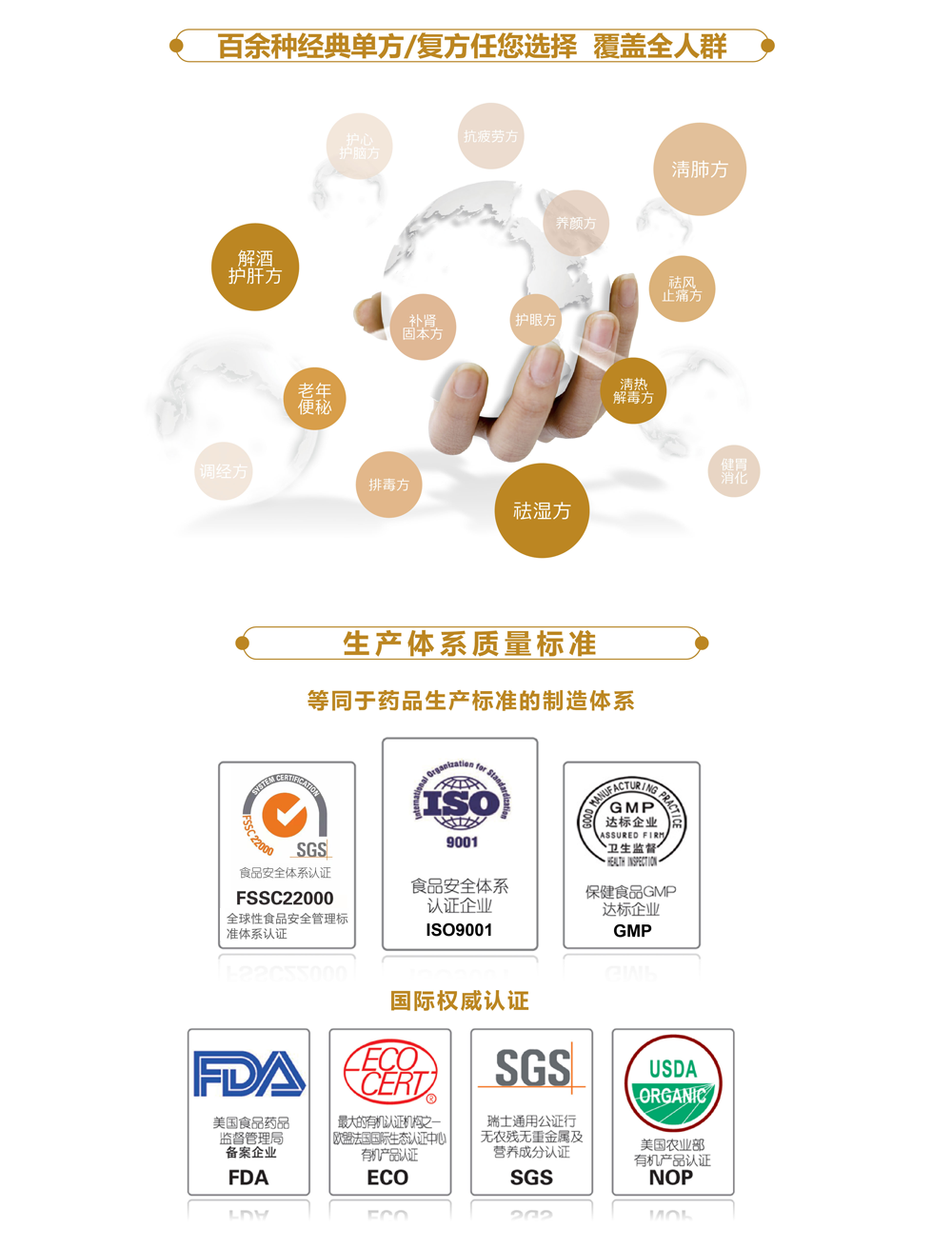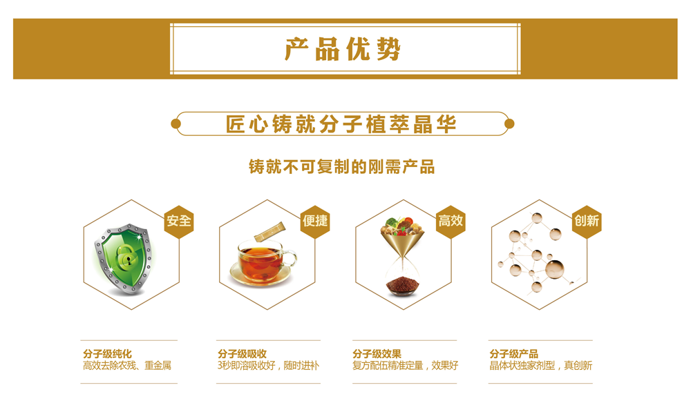 中科分子可提供個(gè)性化分子精華產(chǎn)品OEM/ODM定制生產(chǎn):保健功能食品、藥食同源(中藥材)、新資源食品、營養(yǎng)果蔬、花果原茶等五大系列產(chǎn)品,為您精準(zhǔn)匹配市場資源;百余種經(jīng)典單、復(fù)方產(chǎn)品任您選擇,全面覆蓋終端人群。