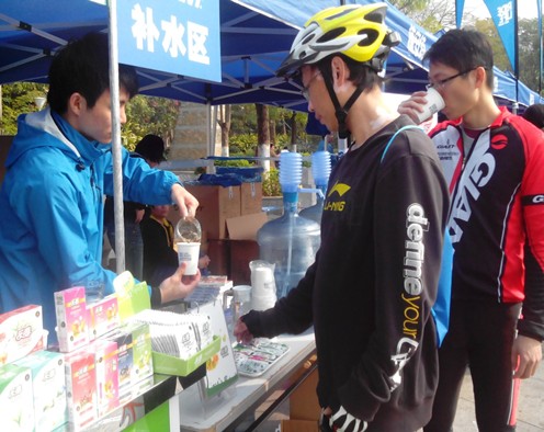 活動現(xiàn)場,飲水區(qū)旁的樂淳即溶茶吸引了大家的眼球。樂淳即溶茶精選優(yōu)質(zhì)原葉及新鮮花果經(jīng)由先進低溫萃取技術(shù)精粹而成,具有速溶、無茶渣、冷熱皆宜且保留了原茶的色香味等特點。運動過程中自由基與運動疲勞的關系早已為人所熟知,聯(lián)合國糧農(nóng)組織(FAO)認為,茶多酚作為一種天然的抗氧化劑,茶多酚及其主要單體兒茶素所具有的多酚羥基結(jié)構(gòu)決定了它能效清除自由基,對延緩運動疲勞、提高人體運動能力及維護運動員健康將起到積極的作用。速溶茶的問世,解除了傳統(tǒng)泡茶的繁瑣,一撕一沖一泡,即成一杯解渴好茶。原來,運動場上,喝茶也這么方便。