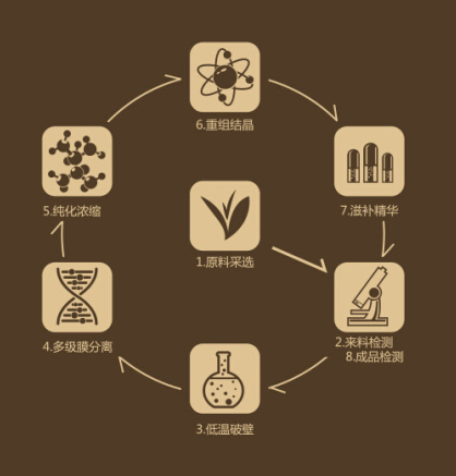 集珍源的PLEESIT的技術(shù),即“植物有效成分高效分離純化技術(shù)集成系統(tǒng)”,通過了低溫破壁萃取,多級膜分離純化,真空低溫重組結(jié)晶,完美的保存了植物最美麗的部分。并將他們美麗的元素帶到人們面前,給他們最便捷的方式去服用這些讓自己美得讓自己心跳的精華。