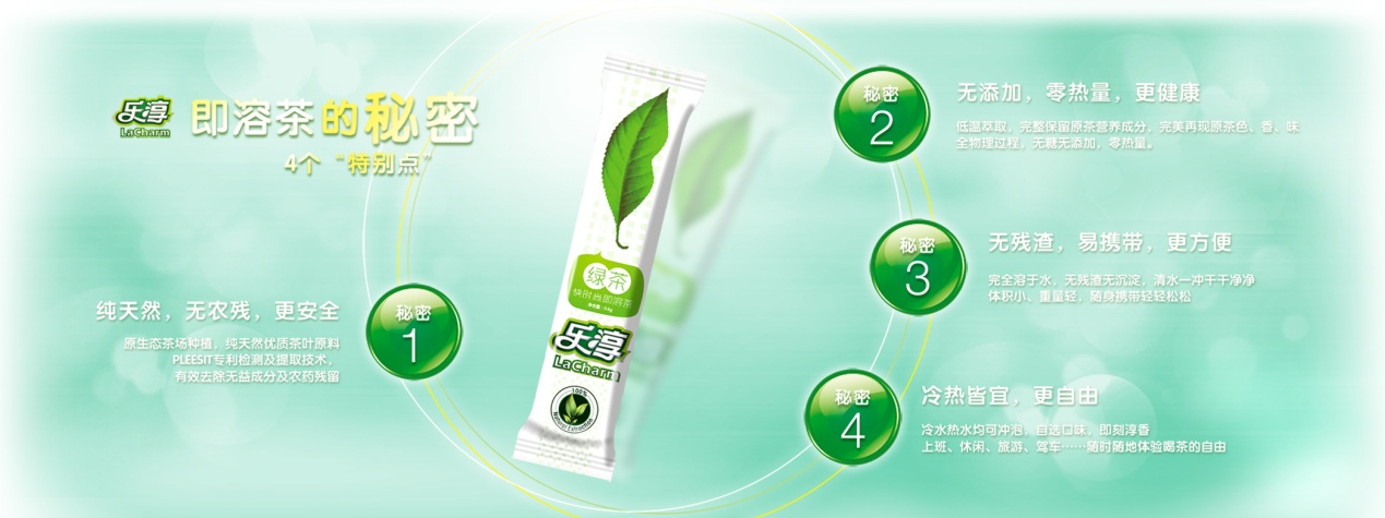據(jù)悉,正源華茶(中國)有限公司在華南地區(qū)投資2億元,創(chuàng)建正源華茶即溶茶精華生產(chǎn)基地、生態(tài)茶園、生物工程產(chǎn)業(yè)園等,是全球領先的即溶茶精華研發(fā)生產(chǎn)供應商。樂淳即溶茶精華是一種能迅速溶解的固體飲料茶,它以成品茶、半成品茶或鮮葉為原料,通過正源華茶自由知識產(chǎn)權的“植物有效成分高效分離純化技術集成系統(tǒng)”(PLEESIT),使用純物理方法的納米生物萃取技術提取成一種即溶入水而無茶渣的的新型固體飲料,與傳統(tǒng)原茶、袋裝茶相比,既很好地保留原有品種茶葉的色、香、味,并且沖飲攜帶更為方便。